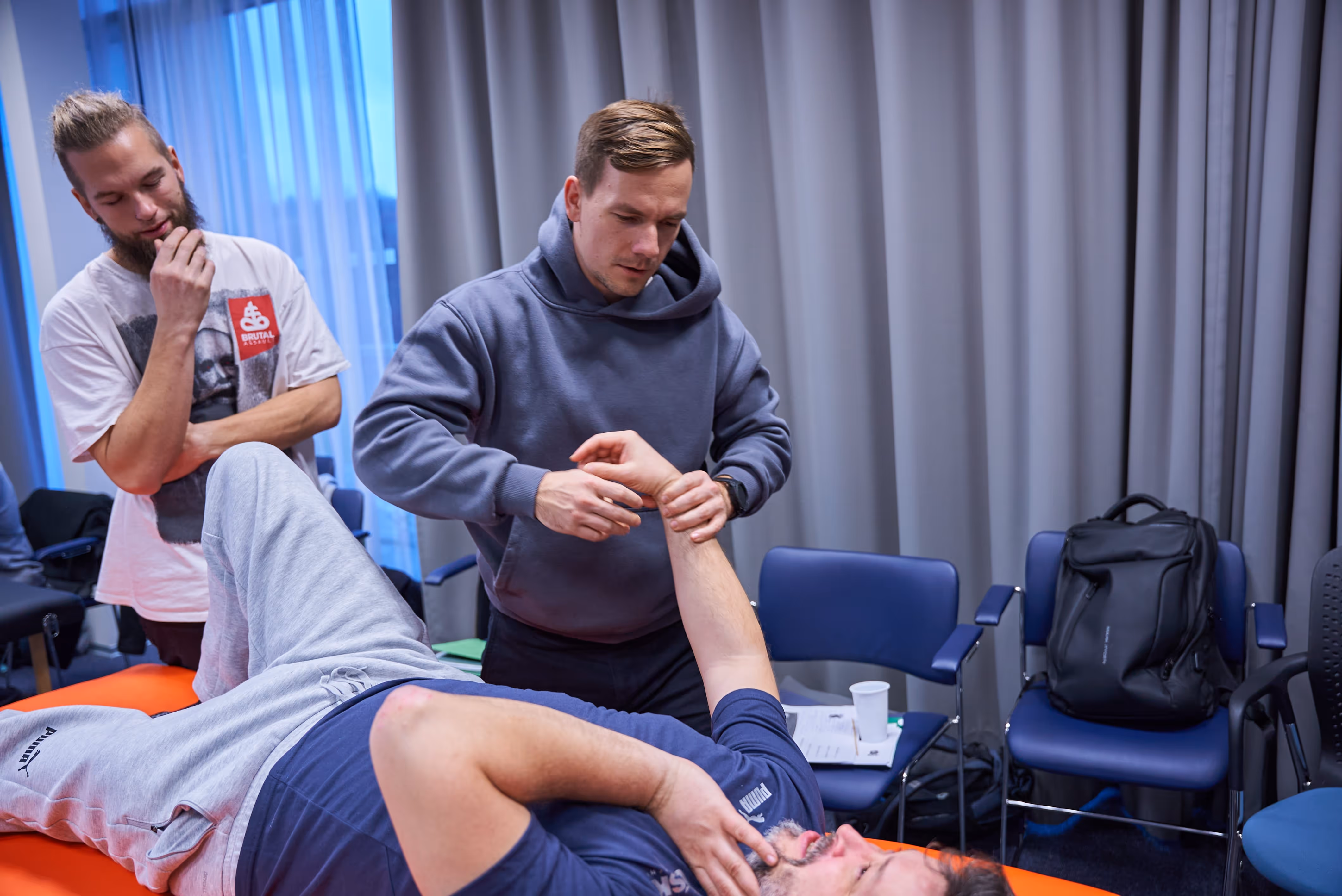 Věříme, že klíčem ke smysluplné terapii je pochopit celý příběh každého člověka. Zajímají nás nejen potíže samotné, ale i starší zranění, pracovní a sportovní zátěž, spánek, stres i vaše vlastní vnímání těla. Úvodní rozhovor proto bereme vážně a zajímá nás, co vás během vyšetření napadá. Každému klientovi věnujeme pozornost, protože věříme, že důvěra, porozumění a prostor jsou pro terapii stejně důležité jako samotné techniky.